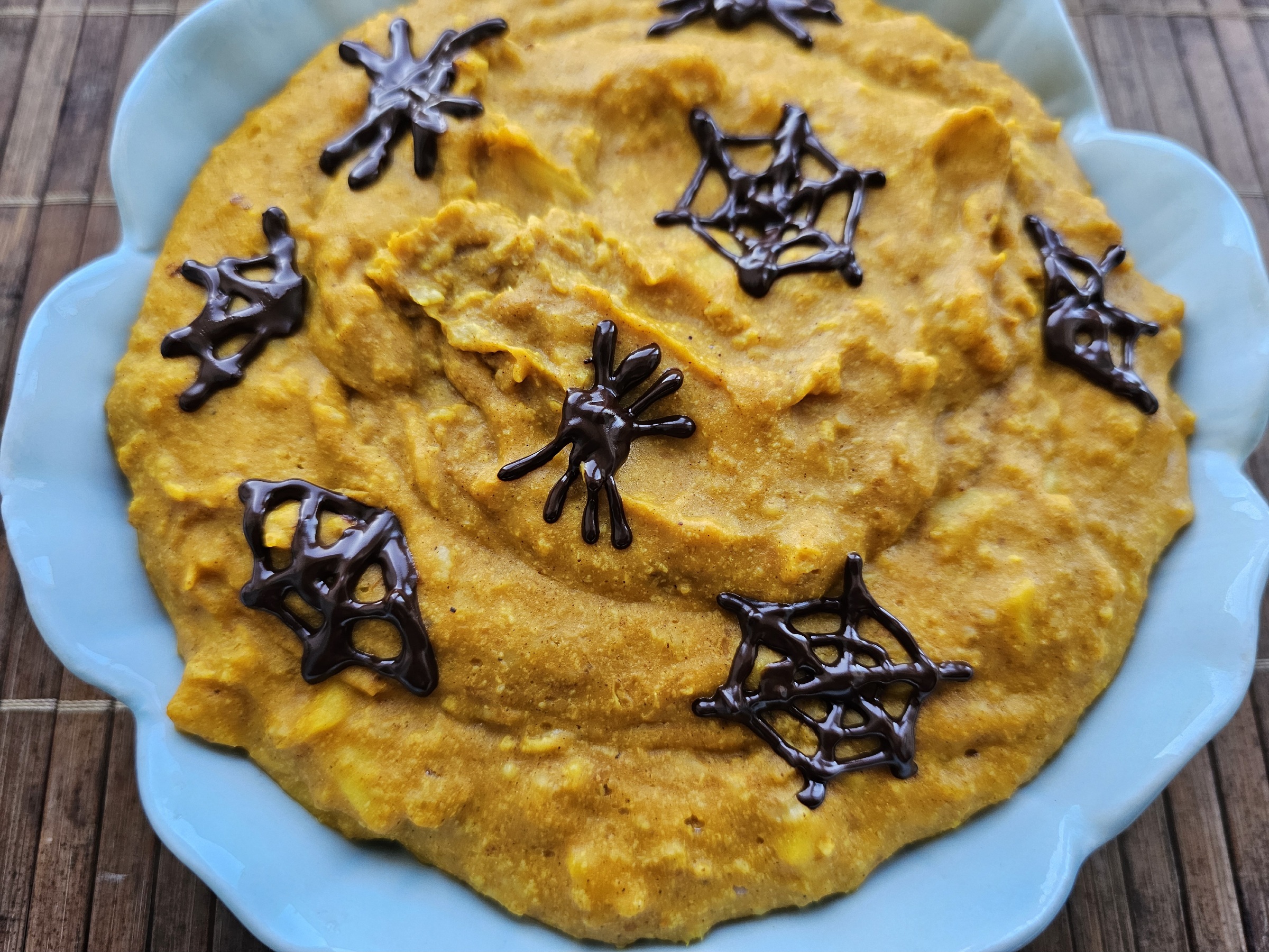 I was trying to come up with a Halloween breakfast idea, and this recipe just came together in my head. I wanted it to both look and taste like the ultimate perfect Halloween meal, and I knew it had to feature pumpkins and spiderwebs. This was actually the first time I used pumpkin puree! It’s not a popular ingredient here in the UK, but you can find it in some shops, if you know where to look. I considered making my own puree – which is actually really simple, and pumpkins are easily available in all supermarkets – but decided that I only needed a small amount of pumpkin puree and would buy it tinned.