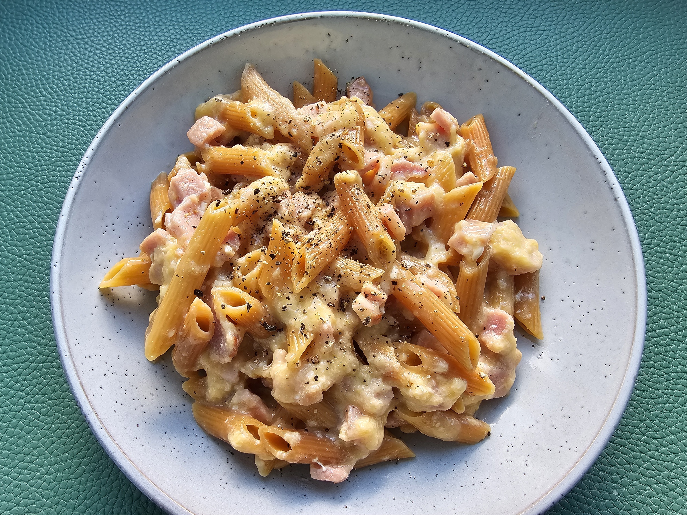 If you’re an Italian and stumbled across this recipe – perhaps best if you look away. The carbonara recipe I’d like to share with you today is a healthier alternative to the delicious classic. If, for whatever reason, you need to control your diet and avoid eating fatty foods but you’re craving a plate of the good old carbonara, then this healthier alternative might be a godsend for you. Whilst it doesn’t taste exactly like the original, it might be good enough to hit the spot. It’s super quick and easy to make and I have it in my weekday meals rota on a regular basis. But of course, if I occasionally crave the real deal – I just go and make that.